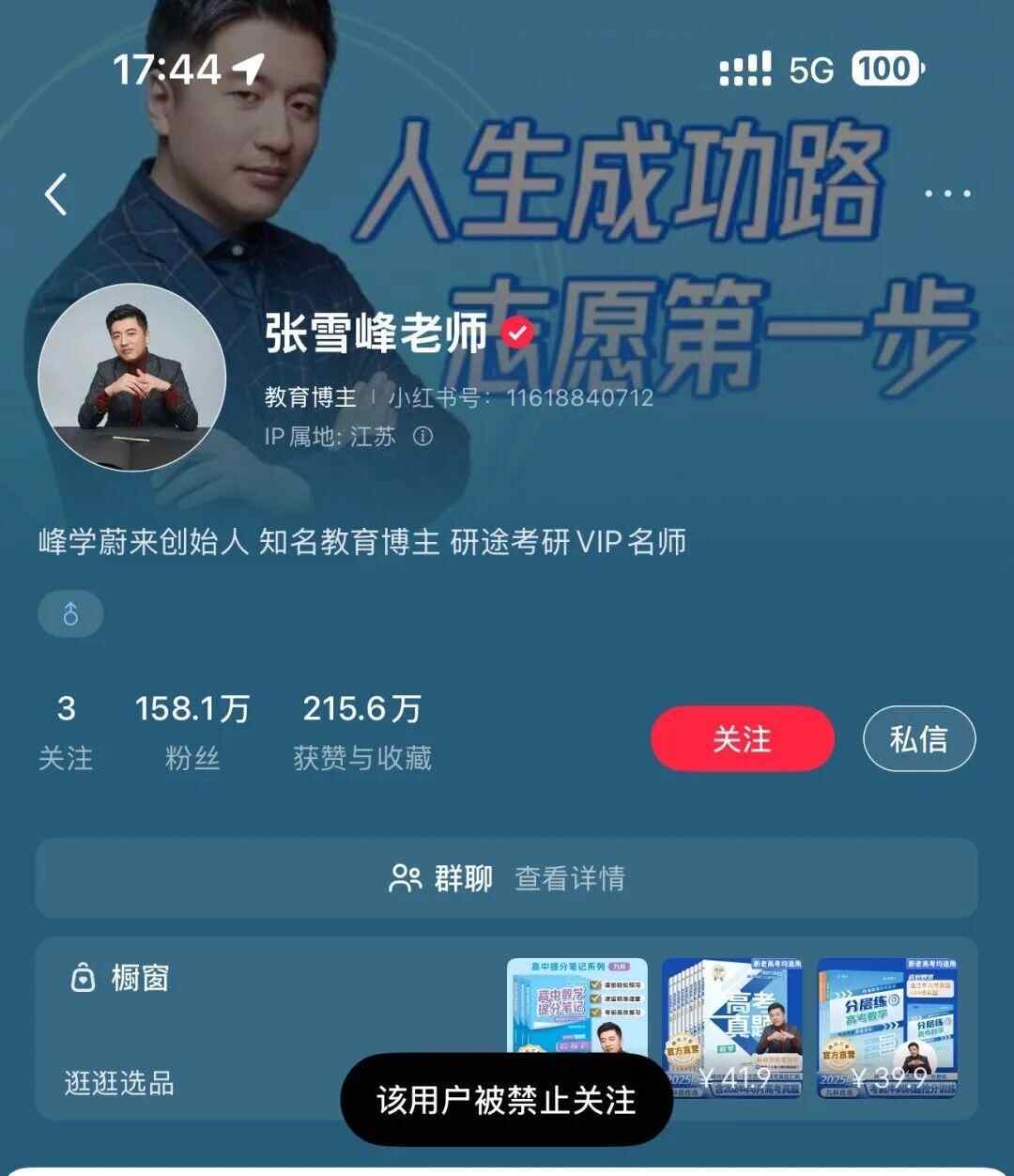 9月24日,张雪峰账号在微博、小红书、抖音和B站平台均被禁止关注。