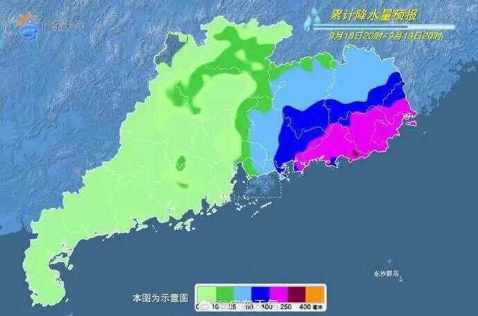 @广东天气 预计,19日-20日,广东有一次暴雨到大暴雨局部特大暴雨过程,中东部沿海市县有7~10级阵风。18日-19日,南海北部海面和广东中东部海面风力自东向西加大至7~9级阵风10~12级。