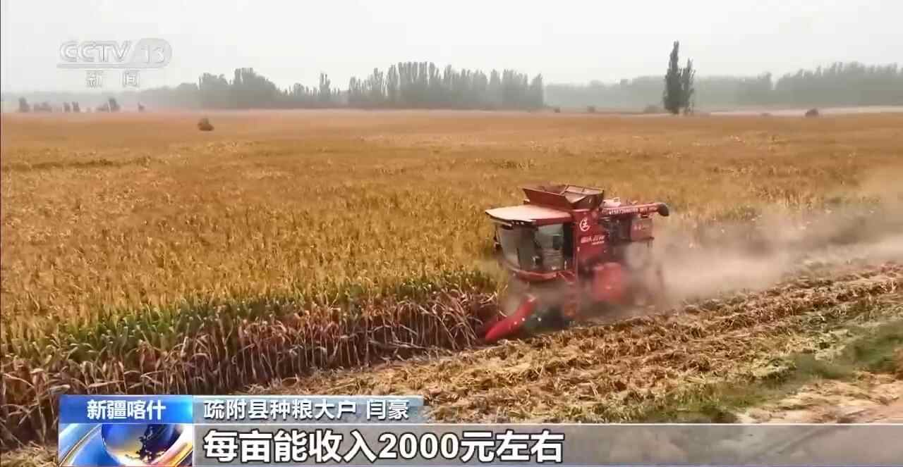 疏附县种粮大户 闫豪:我们引进了新品种,又听从疏附县有关部门,农业部门指导,每亩能收入2000元左右。