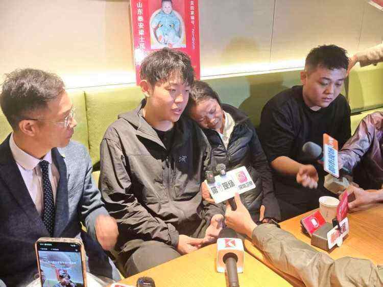 走出法庭后,姜甲儒扶着母亲来到附近酒店。在接受众多媒体采访时,姜母没有发言,虚弱地靠在姜甲儒肩膀上。