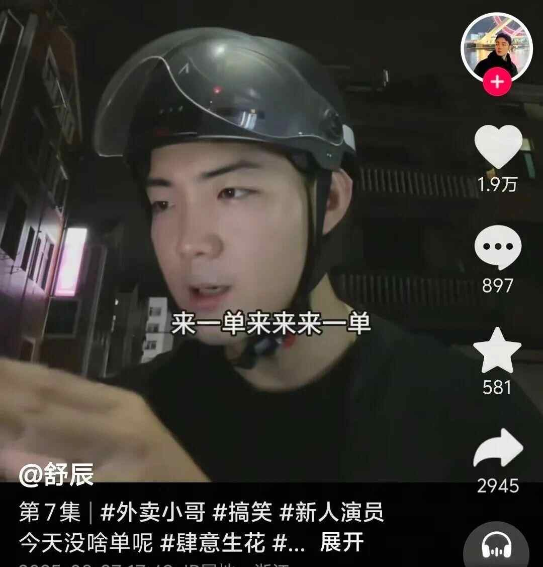 近日,24岁男演员舒辰在个人社交平台上,发布了多段自己在浙江横店接单送外卖的视频。
