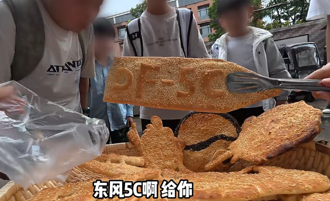 东风-5C、辽宁舰、歼-35……各种造型的烧饼令人眼花缭乱。网友看后纷纷表示:“东风-5C版烧饼,吸引范围覆盖全网!”