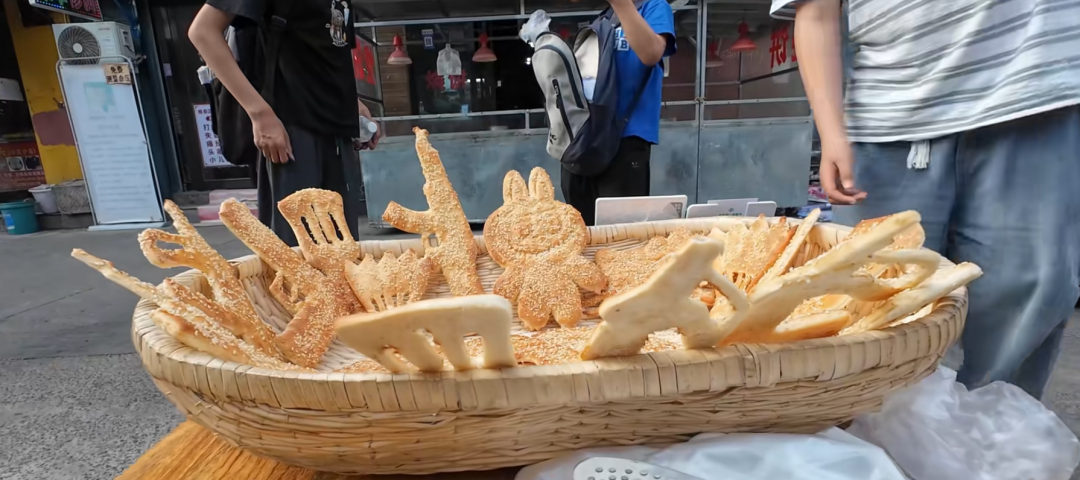 另外,还有各种文物造型的烧饼,如兵马俑、四羊方尊、三星堆面具等。