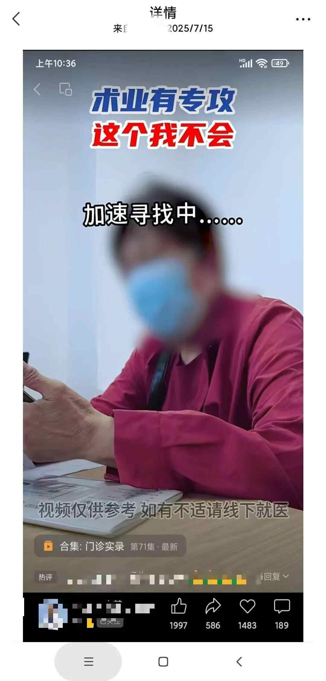 医生账号公开发布的视频中,仅对患者面部进行小范围打码(受访者供图)