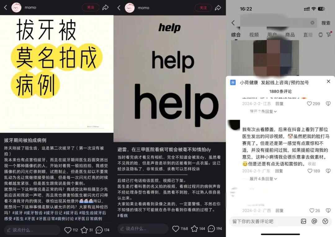 在社交平台上,不少网友留言反映了和李女士一样的遭遇,患者作为公开发布视频里的主要人物,知情同意权未被充分尊重。