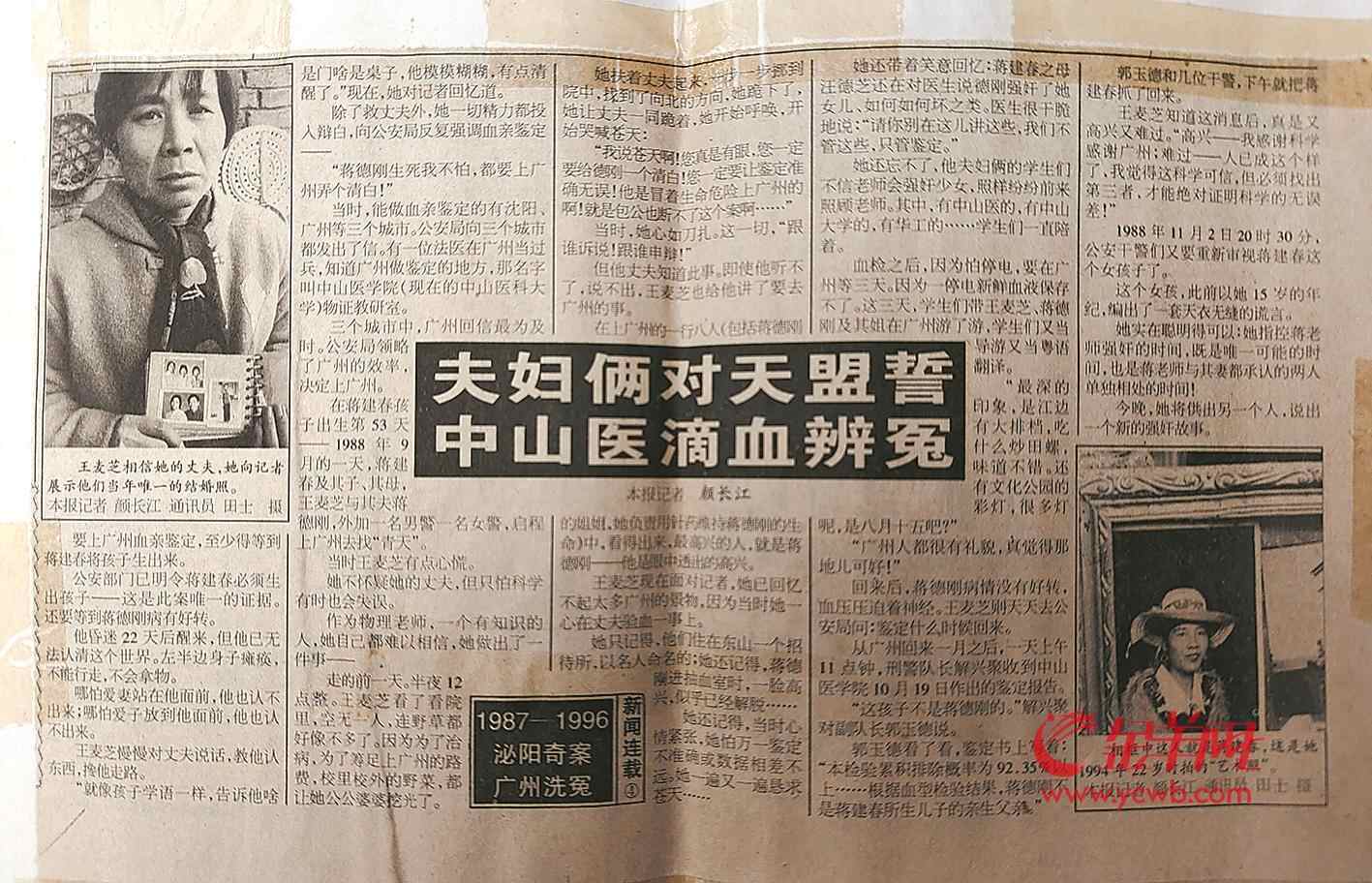上世纪90年代,“泌阳奇案”曾轰动一时。为洗雪丈夫蒋德刚被诬陷强奸小保姆的冤屈,河南泌阳女教师王麦芝奔走多年,终在广州靠“血亲鉴定”还了亡夫清白。1996年农历新春,羊城晚报连续十日刊出新闻连载《泌阳奇案·广州洗冤》,讲述案件始末,王麦芝的自尊与坚韧打动了万千读者。