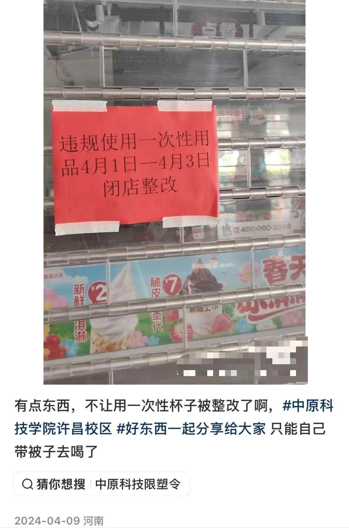 记者检索公开信息发现,早在2024年4月,就有网友反映该校有商户因违规使用一次性用品而被要求闭店整改。2025年,自本学期开学以来,关于“限塑令”的讨论明显增多,有商户和学生均表示质疑。