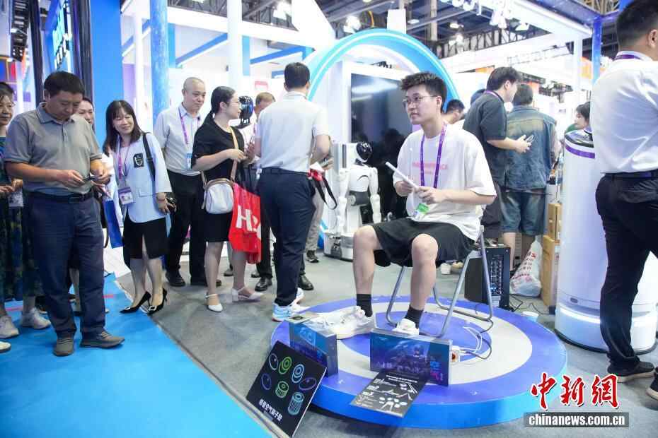 9月17日,正在广西南宁举行的第22届中国—东盟博览会现场,展出的不少先进科技产品成为场上的焦点。图为工作人员演奏“空气架子鼓”吸引不少参观者。