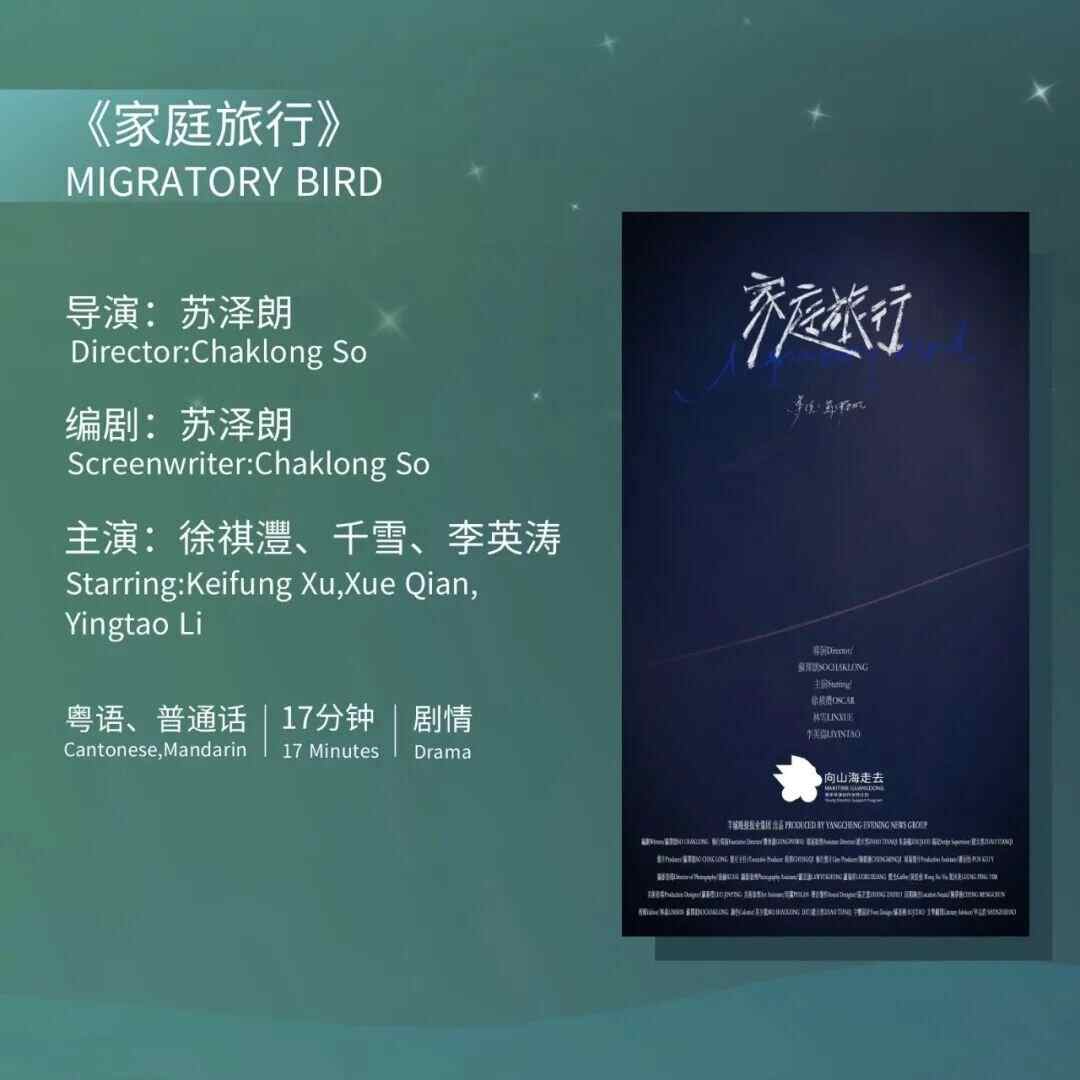 苏泽朗的《家庭旅行》以离队的鸟儿隐喻将要迁徙的香港移民家庭,于细微处传达情感的巨大张力;邓亮宏的《游泳课》讲述客居深圳遥望香港的客家父子关乎“出走”与“留下”的寓言;黄文礼的《海水泡的茶是什么味道》勾勒出越南归侨至亲离散后的落寞群像;陈家操在《中状元》中讲述雷剧少年从远赴南洋到重归故土,戏梦交织间演绎“游郎惊梦”。