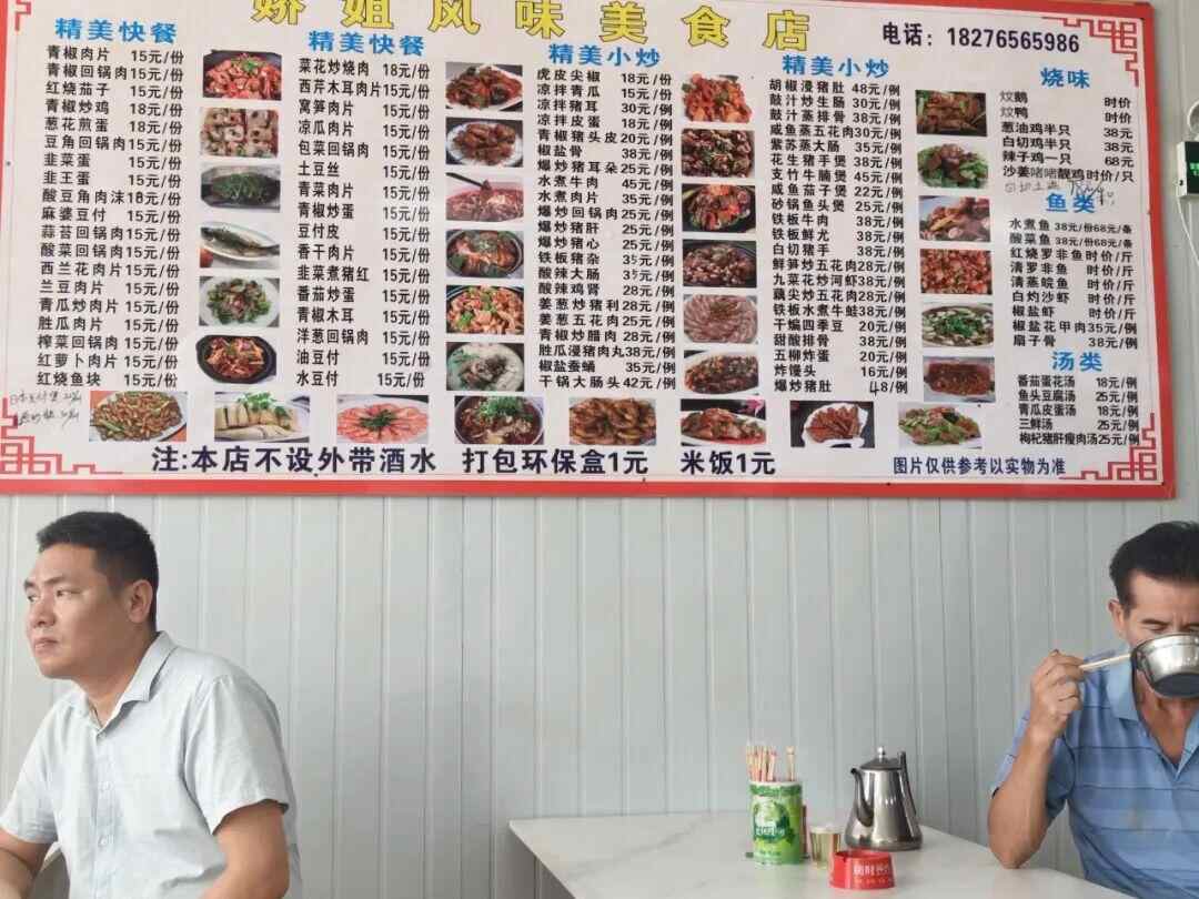 凤姐风味美食店墙上的菜单价目