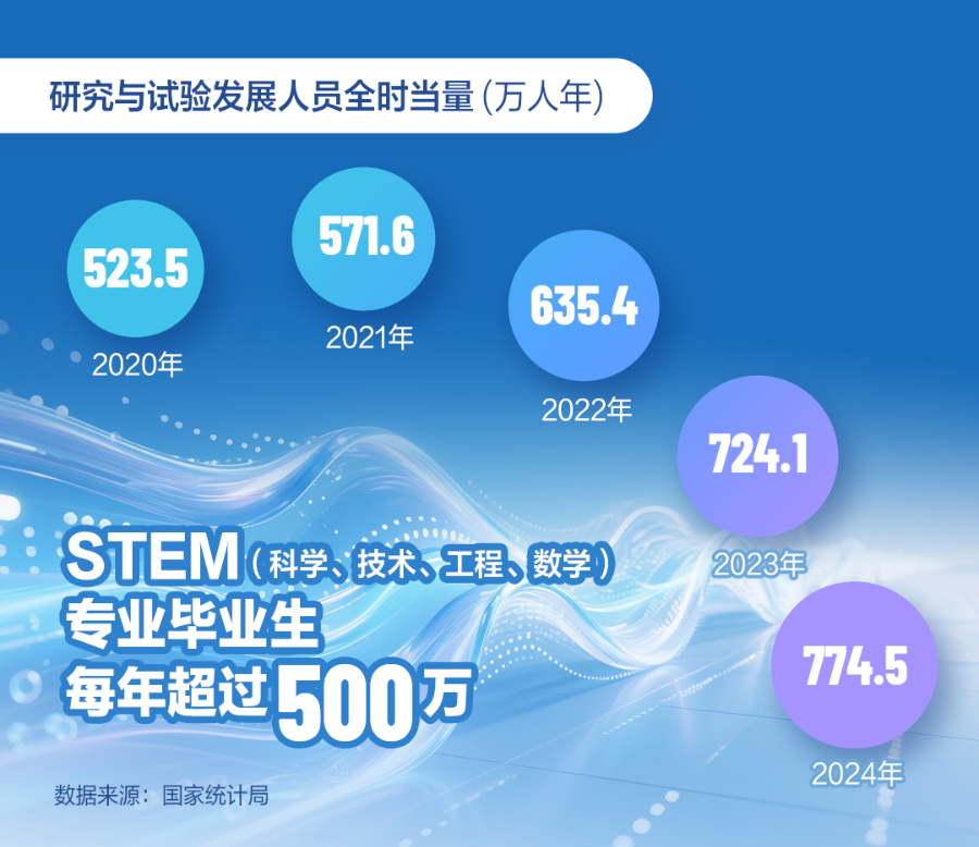 被合称为STEM(科学、技术、工程、数学)的专业毕业生每年超过500万,