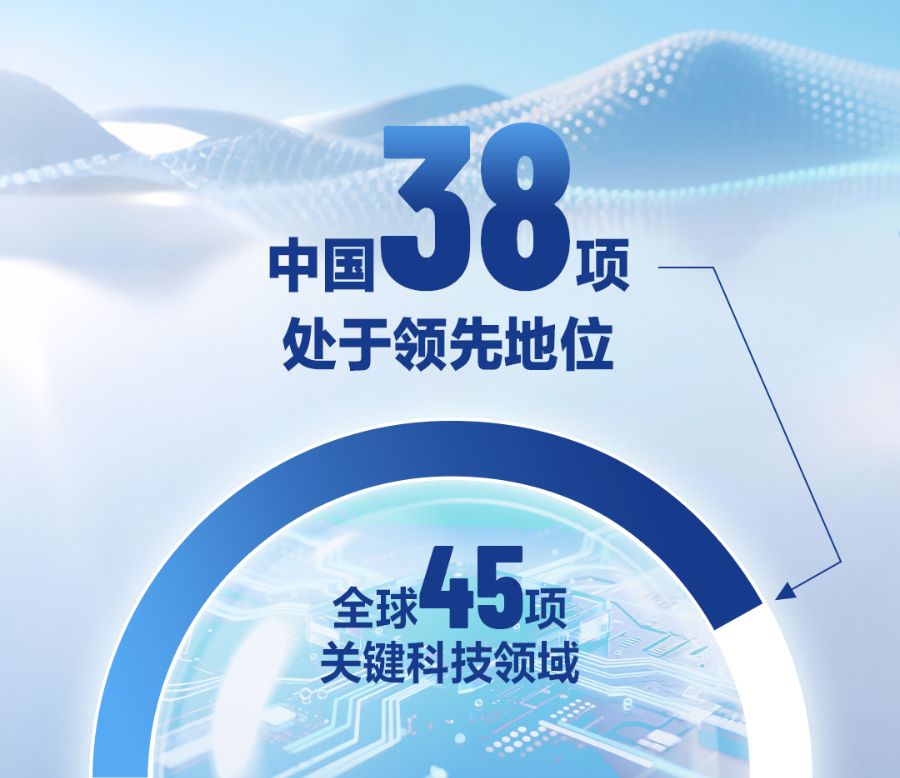 在全球45项关键科技领域中,中国已经有38项处于领先地位。