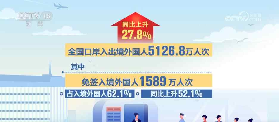 国家移民管理局发布,今年1至8月,全国口岸出入境内地居民2.2亿人次、港澳台居民1.8亿人次,同比分别上升15.4%、11.2%;全国口岸入出境外国人5126.8万人次、同比上升27.8%。其中免签入境外国人1589万人次,占入境外国人62.1%,同比上升52.1%。