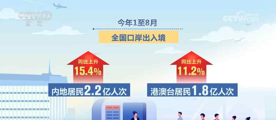 央视网消息:记者9月18日从国家移民管理局获悉,今年1至8月,全国口岸出入境人员4.6亿人次,同比上升14.9%。