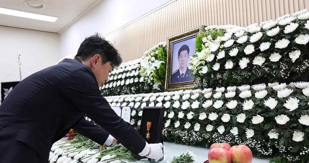 报道称,韩国总统秘书室室长姜勋植当天前往设在仁川市一处殡仪馆,代读李在明发来的唁电,并向逝者追授勋章。李在明在唁电中表示,他对为拯救生命而牺牲自己的李在锡警长表示深切哀悼,并永远铭记那些身穿制服的英雄的献身精神。他还对逝者家属和同事表示深切慰问,祈愿逝者安息。