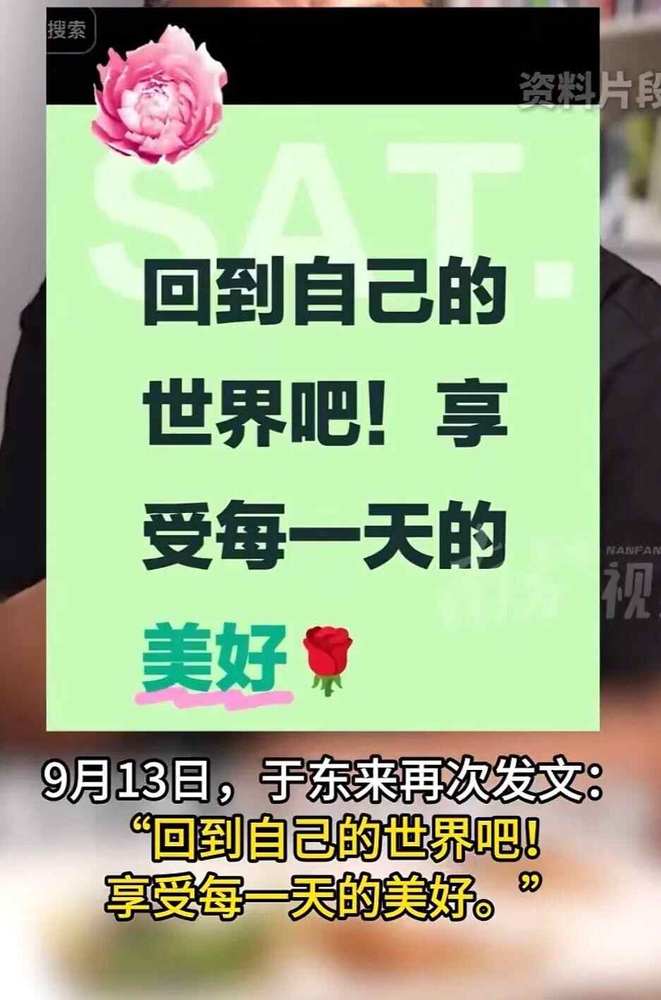 网传视频显示,胖东来董事长于东来9月13日发布新视频称:回到自己的世界吧!享受每一天的美好。