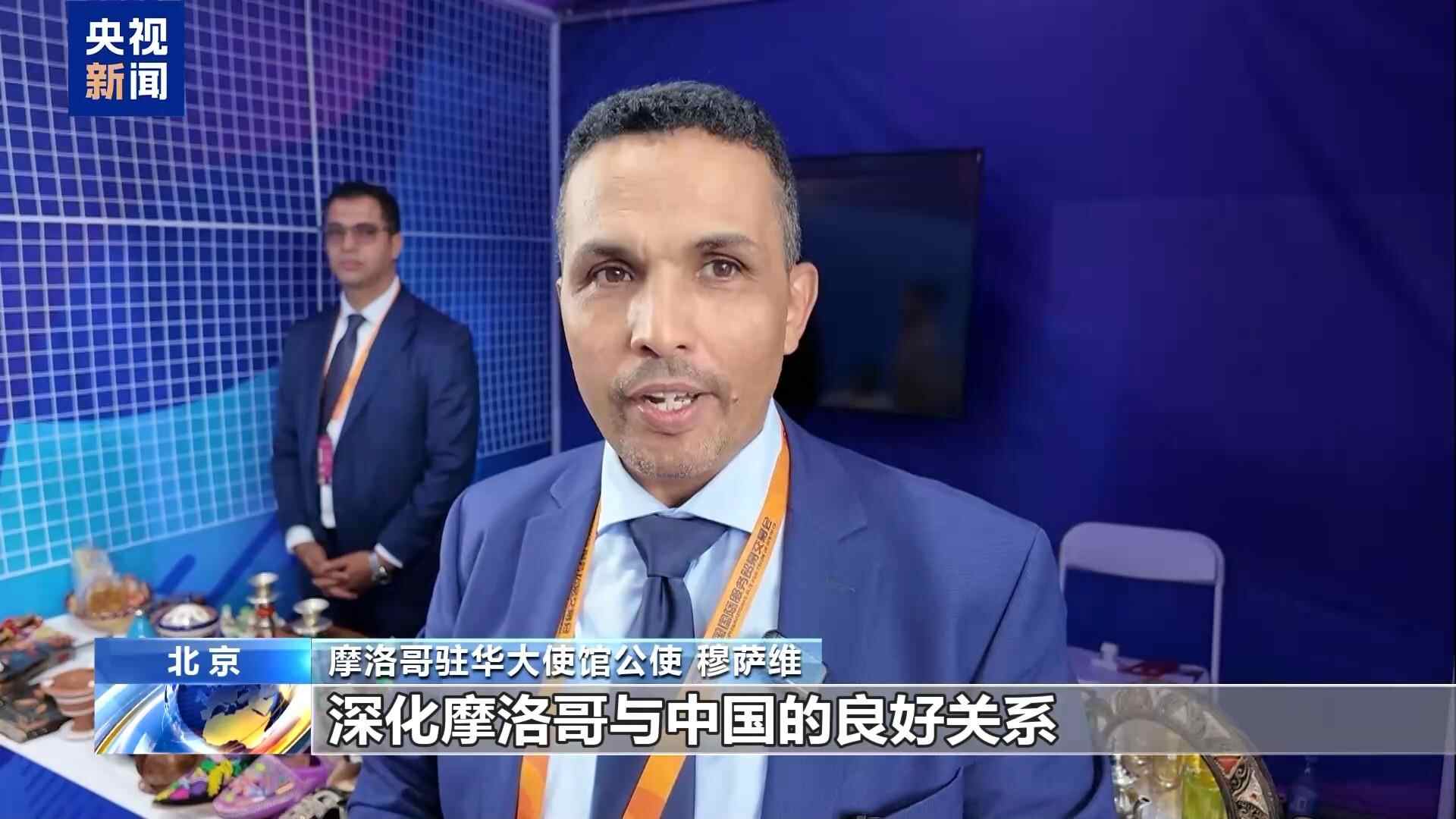 在摩洛哥驻华大使馆展台前,摆满了精致的摩洛哥银器和手工制品。摩洛哥驻华大使馆公使穆萨维告诉记者,今年是他第三次以外交官的身份参加服贸会,而摩洛哥驻华大使馆已经连续多年参展。摩洛哥非常重视这一平台。