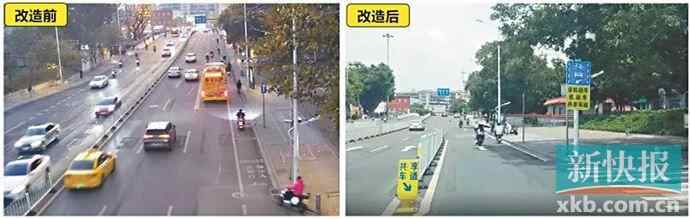 目前已实施试点中,实施前无非机动车道的路段长度占比约14%,如天河区冼村路(双向)、元岗横路(北往南方向)及白云区空港大道(双向)等;实施前非机动车道宽度位于1.5~1.8m之间的路段长度占比约61%,如海珠区新港路、江南大道北(小港路至南华东路)、东晓路(金禧路至前进路)、天河区兴华路(沙太路至广州大道)、沙太南路(兴华路至陶庄路)以及白云区三元里大道(德康路至益寿路)等。实施后,非机动车通行空间均由不足2.5米或“无路可走”拓宽至3.25米以上,骑行体验感得到较大提升。同时,非机动车被隔离护栏限制在机非共享车道内行驶,随意变道穿插大量减少,降低了对其他车道车辆通行干扰,有效改善路段交通秩序。