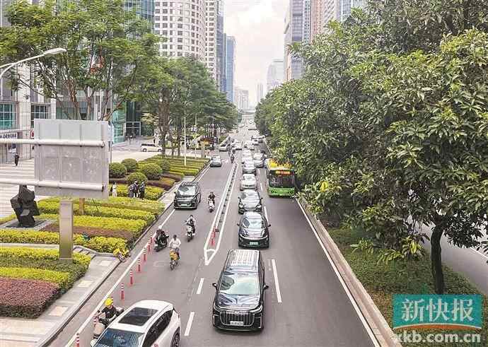 ■在天河区冼村路(花城大道至临江大道)试点路段,机动车与非机动车在共享车道上行驶。