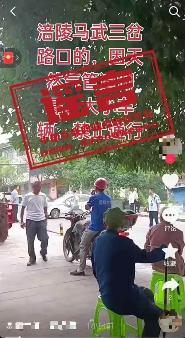 真相:近日,有网民在互联网平台发布信息称“涪陵马武三岔路口,因天然气管道泄漏,大小车辆禁止通行”,引发关注。经涪陵区马武镇政府核实,当日上午,天然气公司对马武镇燃气主管道进行正常维护,属地相关部门和派出所对道路进行临时管控,并于2小时内完成施工并恢复通车,施工过程符合操作规范,未造成人员财产损失,网传信息系谣言。目前,属地已对该网民进行批评教育并督促其删除不实视频。(来源:“重庆辟谣”微信公众号)