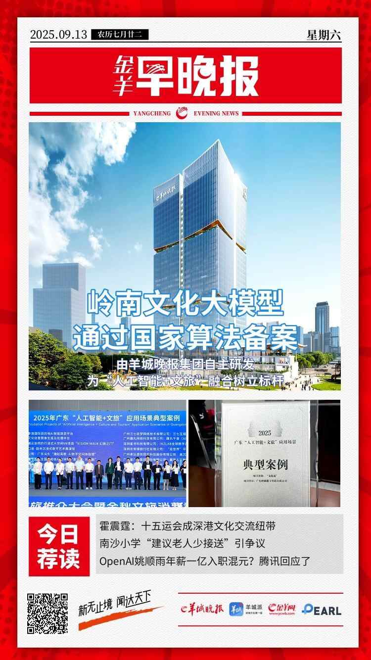 【金羊早晚报】岭南文化大模型通过国家算法备案,为“人工智能+文旅”融合树立标杆