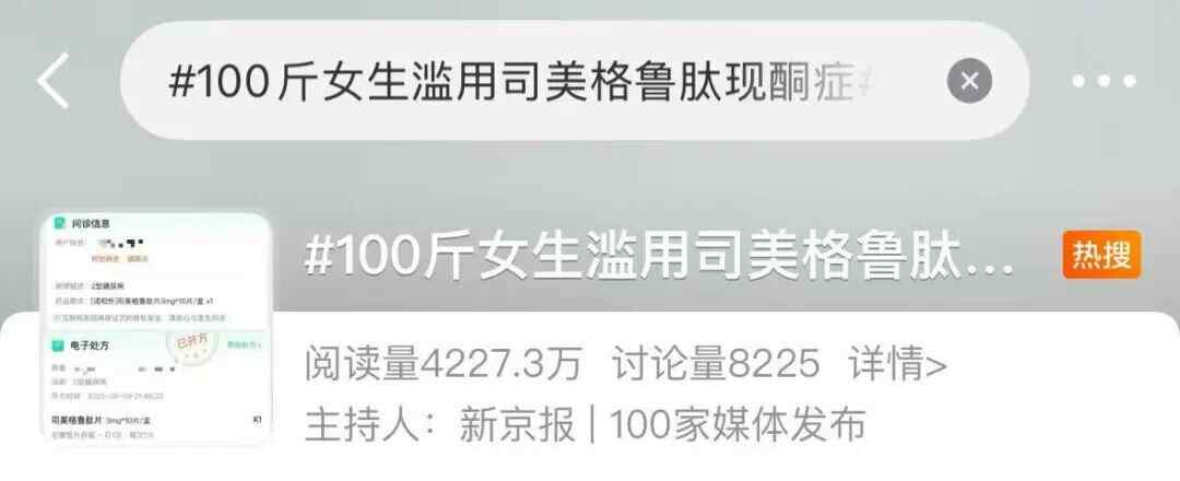 9月10日,话题#100斤女生滥用司美格鲁肽现酮症#,冲上热搜第一。
