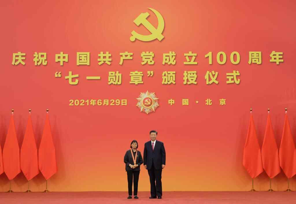 2021年6月29日,习近平总书记向“七一勋章”获得者张桂梅颁授勋章。