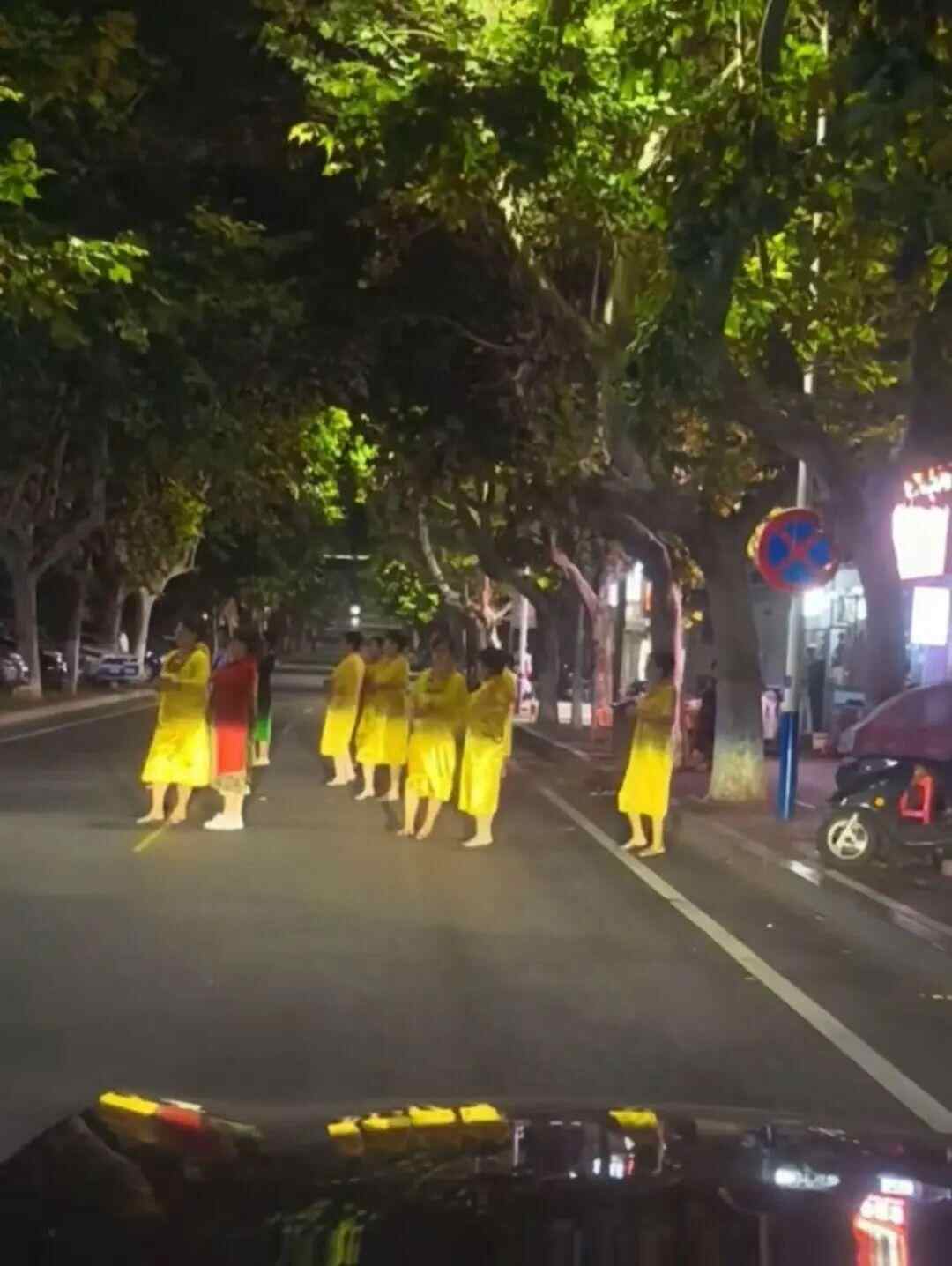 9月10日,记者联系到张女士。她表示,9日晚上九点半左右,在送同事回家行经该路段时遇到了这一场景。阿姨们不仅衣着亮眼,“有红色、黄色、绿色衣服,还是缎面的,在灯光下会反光”,而且都“化着浓妆、盘着头发”,她曾鸣笛示意,但对方并未中断舞蹈让行。