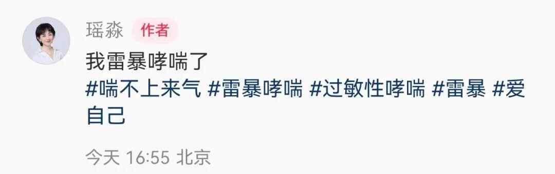 无独有偶,9月10日傍晚,知名主持人瑶淼在个人社交账号上发视频,并配文:我雷暴哮喘了。