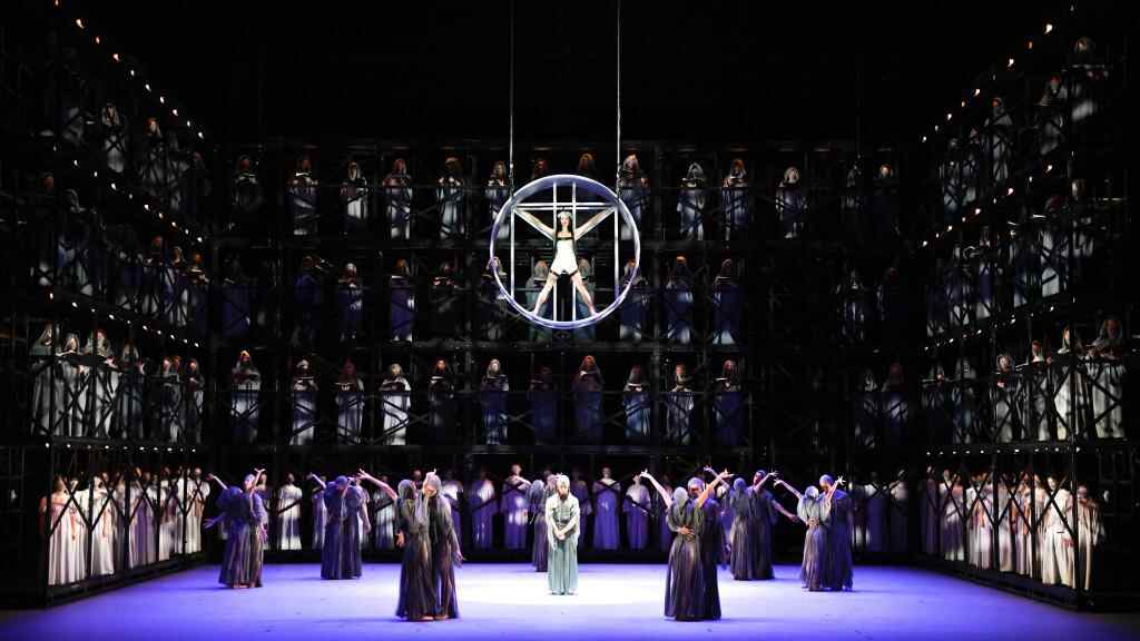 演出中,环绕舞台的9米高台营造出修道院内景,在香港管弦乐团驻团指挥廖国敏的指挥下,上海过百位歌唱家登上高台演唱,营造出震撼的视听效果。