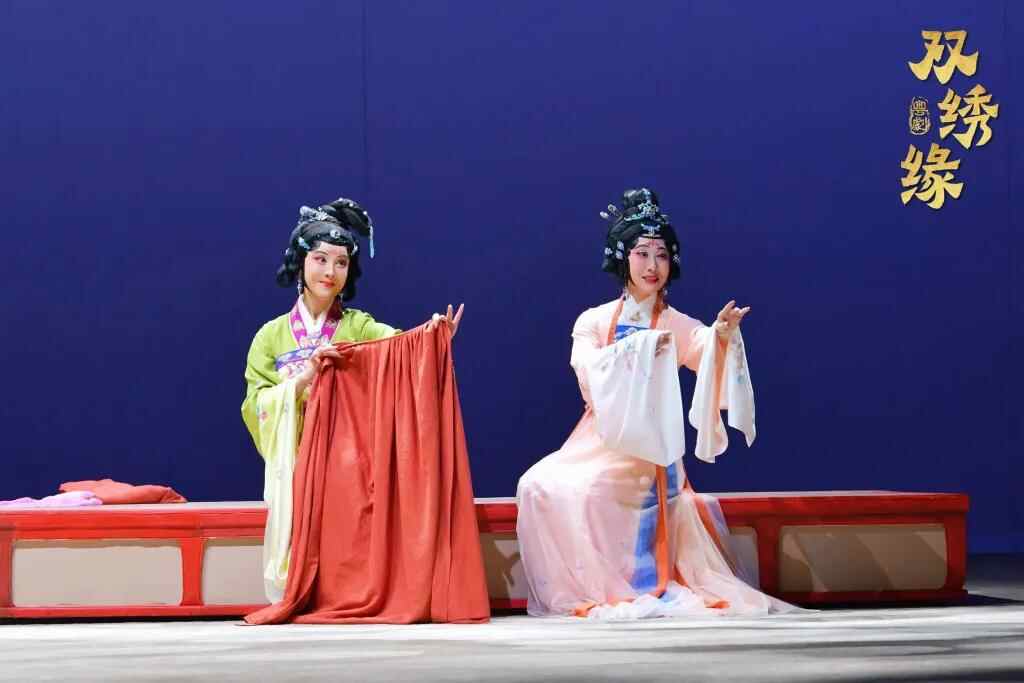 广州粤剧院的粤剧《双绣缘》,将粤剧、广绣非遗结合,通过“双生双旦”结构,讲述大唐元和十年淮西战乱时期,以“绣”联结起两对男女之间的爱情渊源与纠葛。