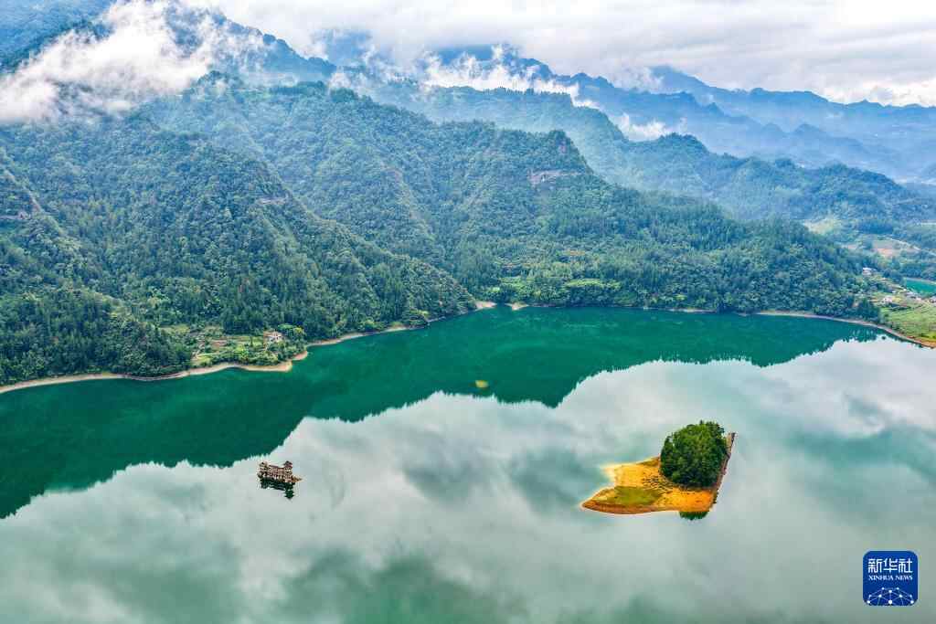 初秋时节,位于重庆市黔江区内的小南海湿地自然保护区湖水碧如翡翠,倒映着远山青黛,云雾朦胧,宛如一幅水墨丹青。