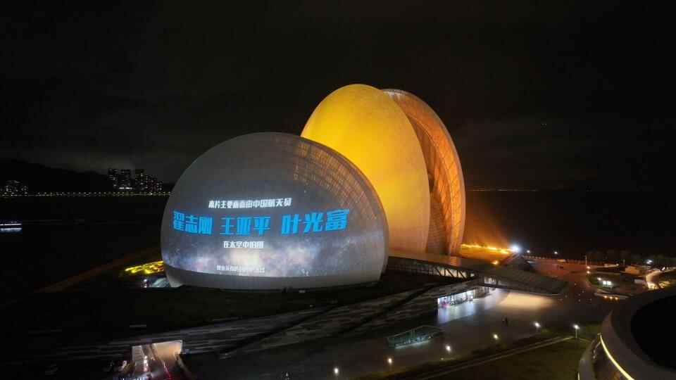 在中山,中山日报大厦、利和广场亮起户外大屏,“中国首部太空电影”字样照亮了观众脸上的憧憬。