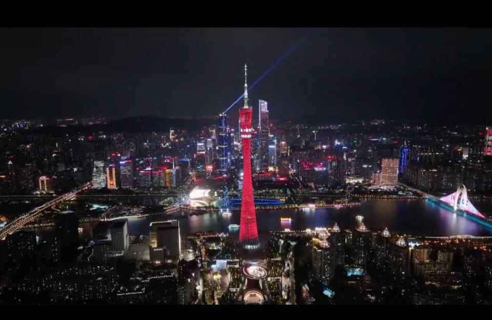 在广州,“蓝星”点亮广州塔璀璨灯光,将航天梦带入繁华的街巷。