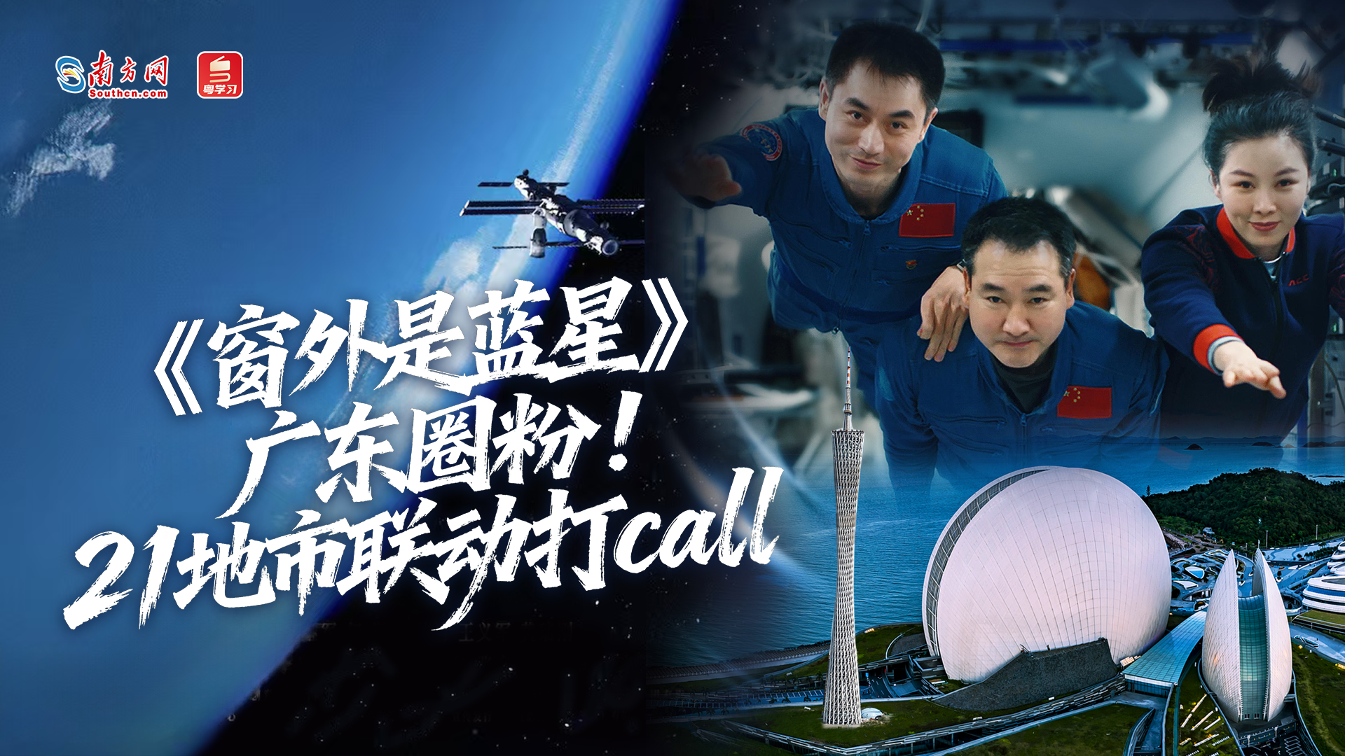 南方网、粤学习推出《广东亮起“蓝星”》视频,记录广东21个地级以上市为《窗外是蓝星》点亮大屏的动人瞬间。