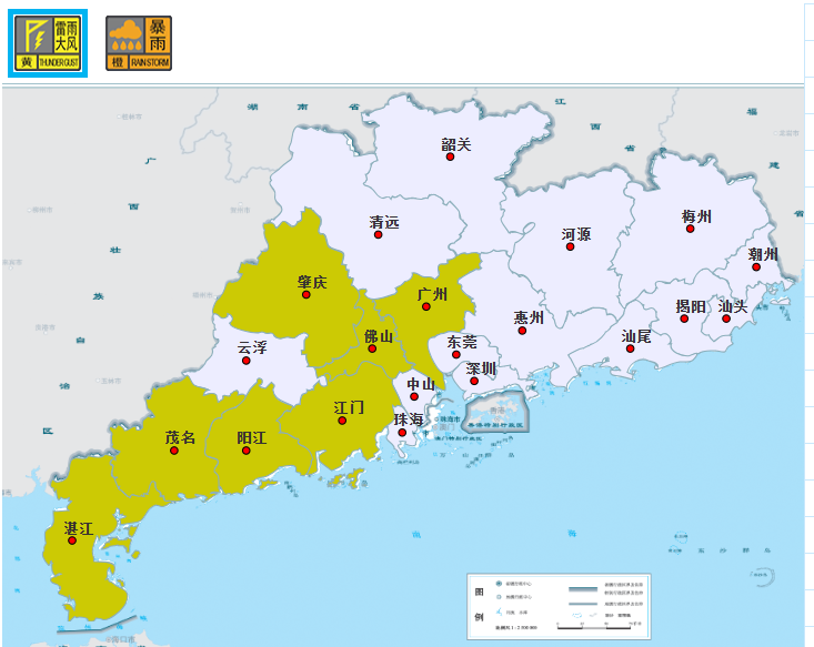 雨水仍未停,广州多区发布雷雨大风预警信号