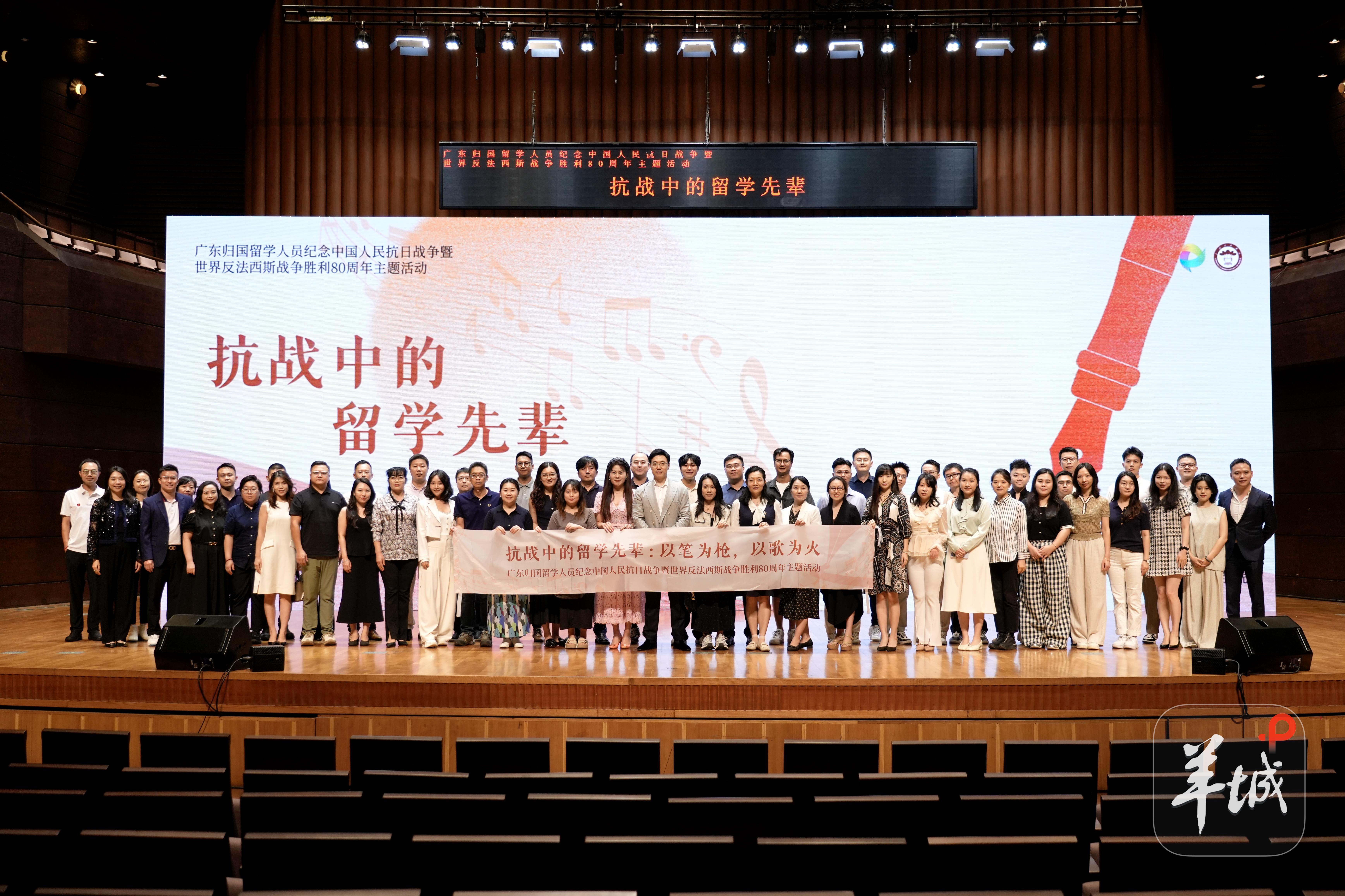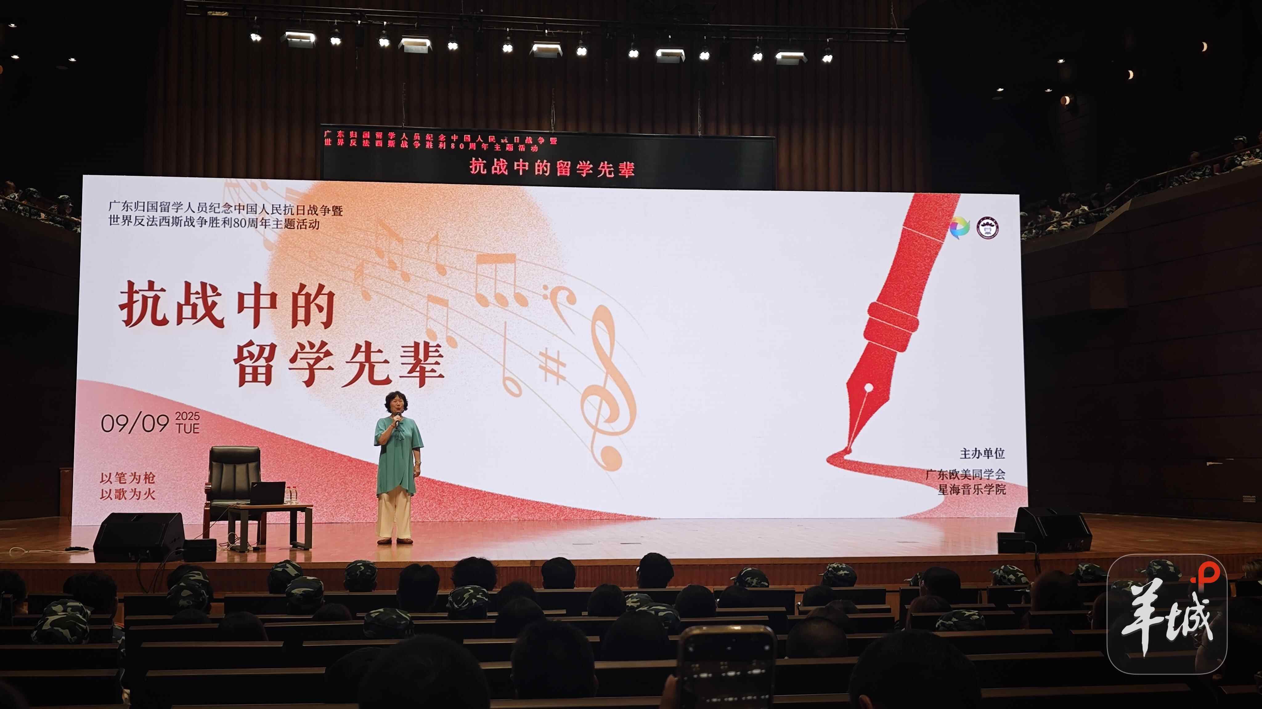 这是由广东欧美同学会与星海音乐学院联合主办的“抗战中的留学先辈:以笔为枪·以歌为火”纪念中国人民抗日战争暨世界反法西斯战争胜利80周年主题活动。广东归国留学人员与星海音乐学院师生逾1000人参与活动。