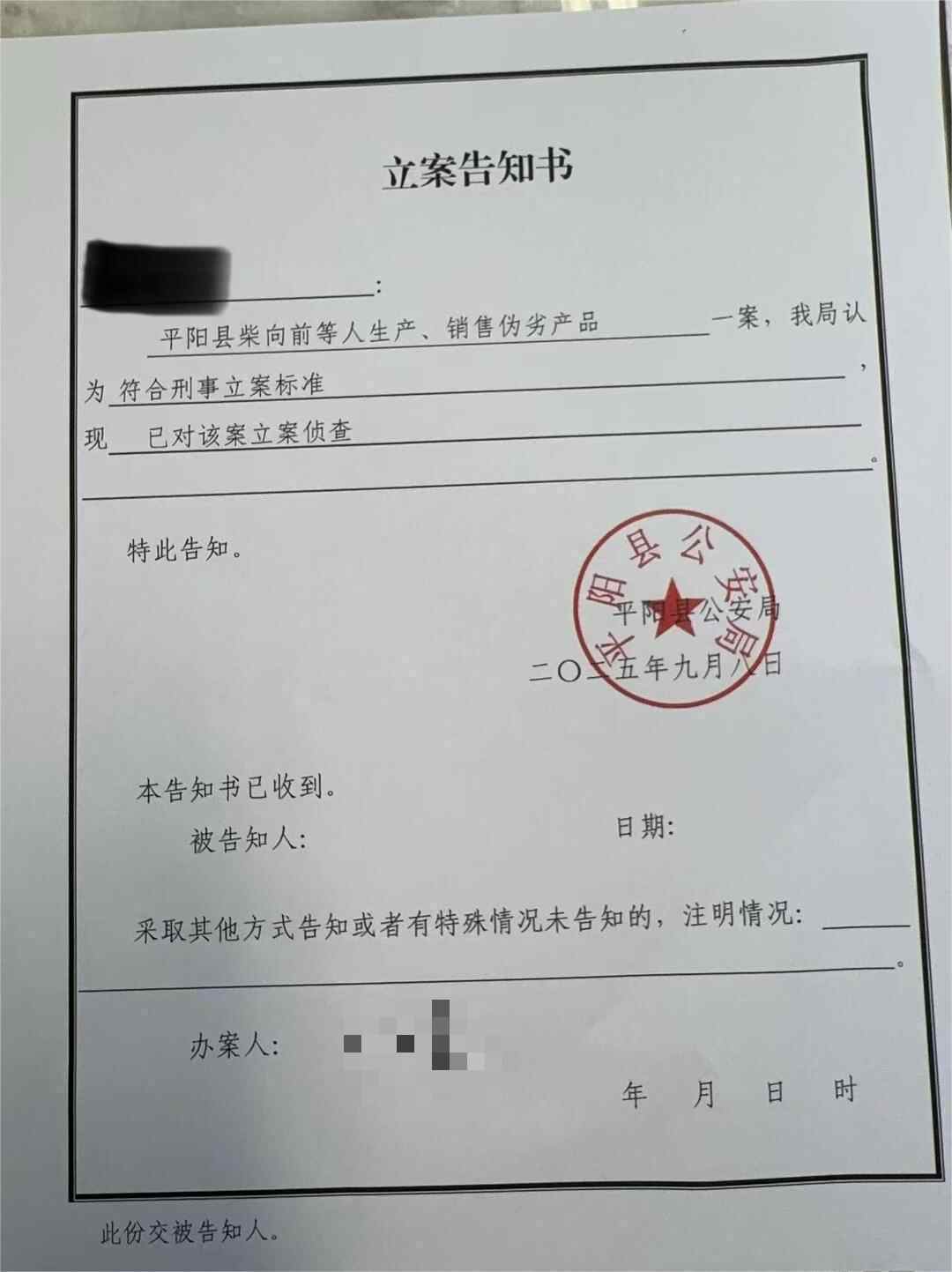 9月10日,记者获悉,网红“柴怼怼”(原名柴向前)等人因涉嫌生产、销售伪劣产品,已被温州市平阳县公安局立案侦查。此前,多名消费者向记者反映,9月8日“柴怼怼”等人已被警方带走调查,记者致电平阳县公安局,民警确认情况属实。