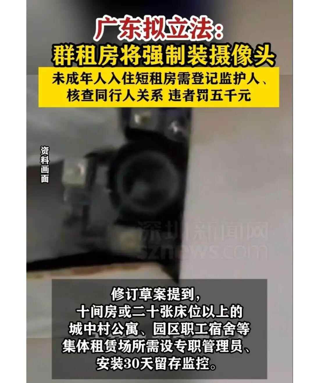 近日,《广东省租赁房屋治安管理规定(修订草案修改稿征求意见稿)》(以下简称《意见稿》)向社会公开征集意见。《意见稿》提出,全省建立租赁信息联网报送机制,对十间以上集中出租房,要求配备专职管理员、建立治安制度,并在公共区域安装能够保存不少于三十日的监控设备,同时设立未成年人入住保护条款,力图通过精细化手段筑牢租赁安全防线。
