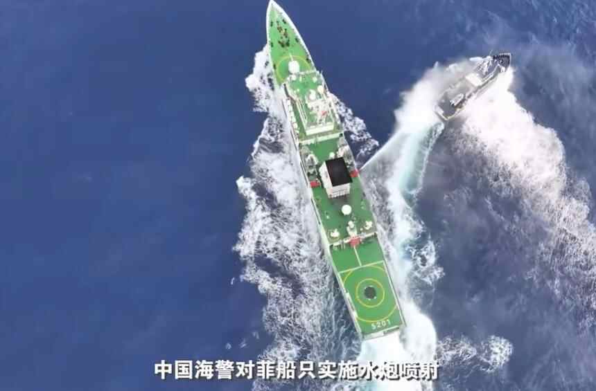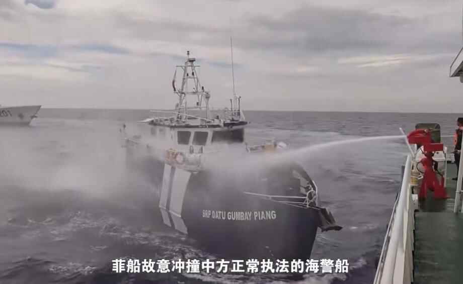 其间,菲3014号公务船危险机动、故意冲撞中方正常执法的海警船,危及中方船只和人员安全,中国海警依法采取管控措施,现场操作专业规范、正当合法。