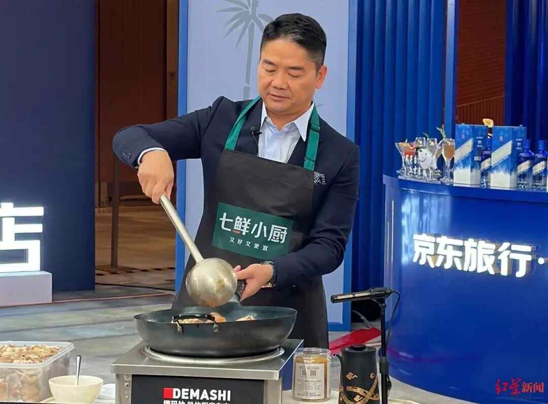 刘强东表示,自己是第一次参加直播,还是略感紧张,称“像贾国龙先生第一次炒菜一样紧张,像罗永浩第一次说脱口秀一样紧张。”