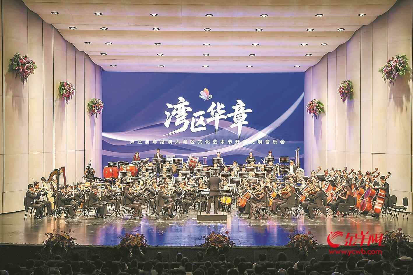 羊城晚报全媒体记者 记者艾修煜报道:16日晚,由文化和旅游部、广东省人民政府、香港特别行政区政府、澳门特别行政区政府共同主办的第五届粤港澳大湾区文化艺术节开幕式及开幕演出《湾区华章》主题交响音乐会在广州大剧院盛大举行。《湾区畅想》《珠江惊雷》《赛龙夺锦》《白云晚望》等7部原创交响乐上演,以音乐形式展现了大湾区的文化底蕴、时代新貌以及家国情怀。