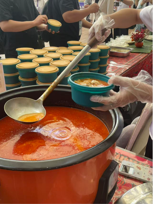 在探访过程中,采风团成员们不仅饱览了东盟各国的特色商品,更在现场沉浸式体验了东南亚美食。工作人员热情地为采风团成员盛上香气四溢的叻沙等特色美食,让记者和网络名人们通过味蕾感受东盟国家的独特风情。美食,成为了连接中国与东盟的又一重要纽带。