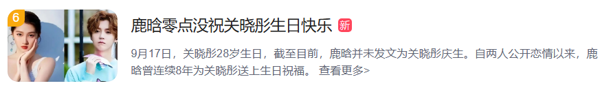 9月17日,话题“鹿晗零点没祝关晓彤生日快乐”冲上热搜榜,引发热议。