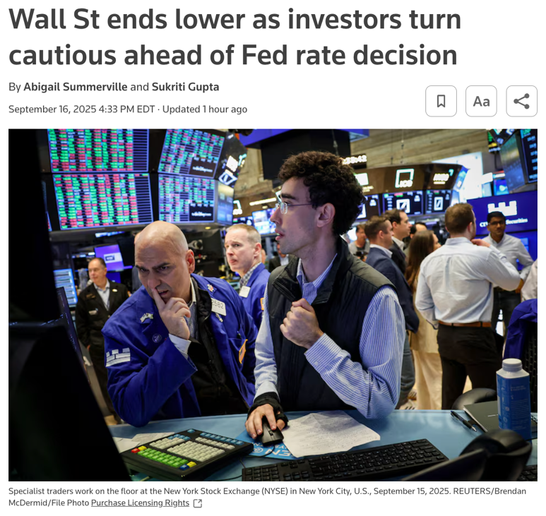 当地时间9月16日,美联储决策机构联邦公开市场委员会(FOMC)在首都华盛顿召开货币政策会议,该会议常常被形容为“华尔街的心跳”,因为其不仅决定美元利率高低,也牵动全球资本流向、各国央行政策,乃至普通家庭的房贷和就业。正因为FOMC决定牵一发而动全身,本次会议的敏感性更显突出。