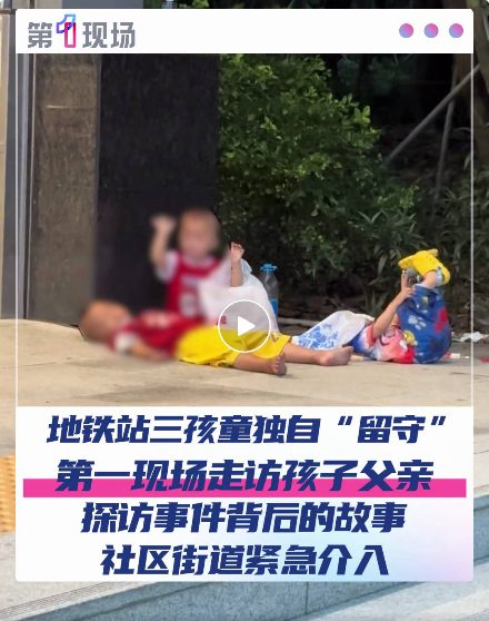 近日,有网友爆料称,在深圳地铁11号线宝安站B出口有3名幼童坐在地上,身旁无大人陪伴。相关视频显示,在一地铁口处,有3名幼童正独自玩耍,其中一小孩正小范围地“乱跑”,另外2名孩子则一人躺地,一人坐着招手,且在他们身旁还放有水瓶和垫子。