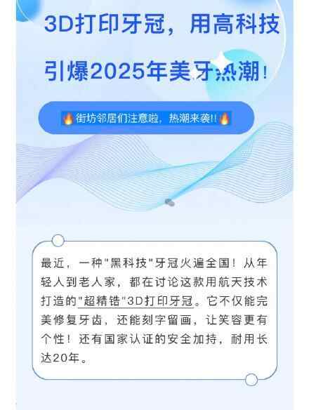 随着3D打印牙冠定制技术的推广普及,近日,上海一名牙科医生在社交平台分享称,新出现了一种打印牙冠个性化定制,颇受年轻患者青睐,“发财”“上岸”等字样成为热门选择。网友戏称此为“牙齿文身”,调侃这寓意“咬咬牙就发财、咬咬牙能上岸”。还有网友表示:“皮肤文身已经过时了,牙齿刻字才是新一代的个性表达。”但也有人质疑:“口腔并非许愿池,刻字究竟给谁看?饭吗?”