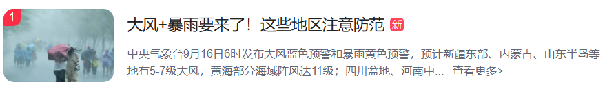 中央气象台9月16日06时继续发布大风蓝色预警:预计,9月16日08时至17日08时,新疆东部及南疆盆地、甘肃河西、青海北部、内蒙古西部和中东部、东北地区西部、山东半岛等地部分地区有5级、阵风7级的大风,其中,内蒙古东北部的部分地区风力可达7级、阵风9级;渤海、渤海海峡、黄海北部和中西部海域将有7至8级、阵风9级的大风,其中黄海中西部的部分海域风力可达9至10级、阵风11级。
