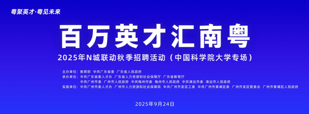 粤聚英才、粤见未来。由广东省委、省政府联合教育部主办,广东省委人才办、省人力资源社会保障厅、省教育厅以及广东省21个地级以上市党委、政府,广东省委横琴工委、广东省政府横琴办承办的“百万英才汇南粤”2025年N城联动秋季招聘活动即将启动,活动以“万企进百校”高校专场形式,邀约优秀高校毕业生来粤就业创业。