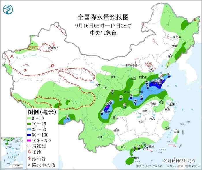 央视网消息:据中央气象台9月16日消息,昨日,四川、山东、河南、陕西等地部分地区大雨或暴雨,局地大暴雨,四川广元局地特大暴雨。今天,上述地区仍将有降雨天气,其中四川盆地西部、山东中南部有强降雨,请公众加强防范强降雨,并警惕局地强对流危害。
